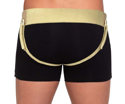 Introduzca ambas piernas por los orificios (tipo ropa interior), quedando las dos correas por la parte trasera.